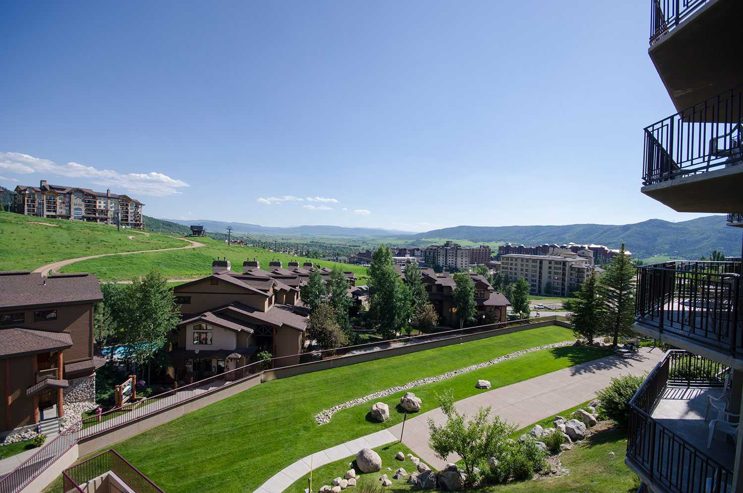 During summer, hang out on your private balcony or enjoy the sundeck, outdoor grill area and lawn leading to the ski area base, where an eclectic mix of shops and restaurants abound within easy walking distance. Stroll along the Steamboat Ski Area promenade and frolic in the refreshing Rocky Mountain creek that flows through the base area, where summer activities and events such as free concerts and art exhibits further enhance Steamboat’s glorious summertime surroundings.
