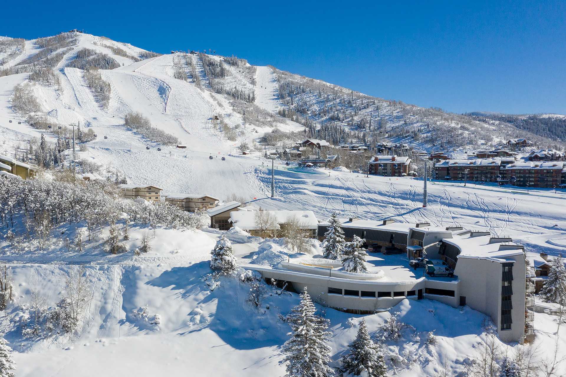And when the snow's falling, you can ski right back to the building—no shuttle required.