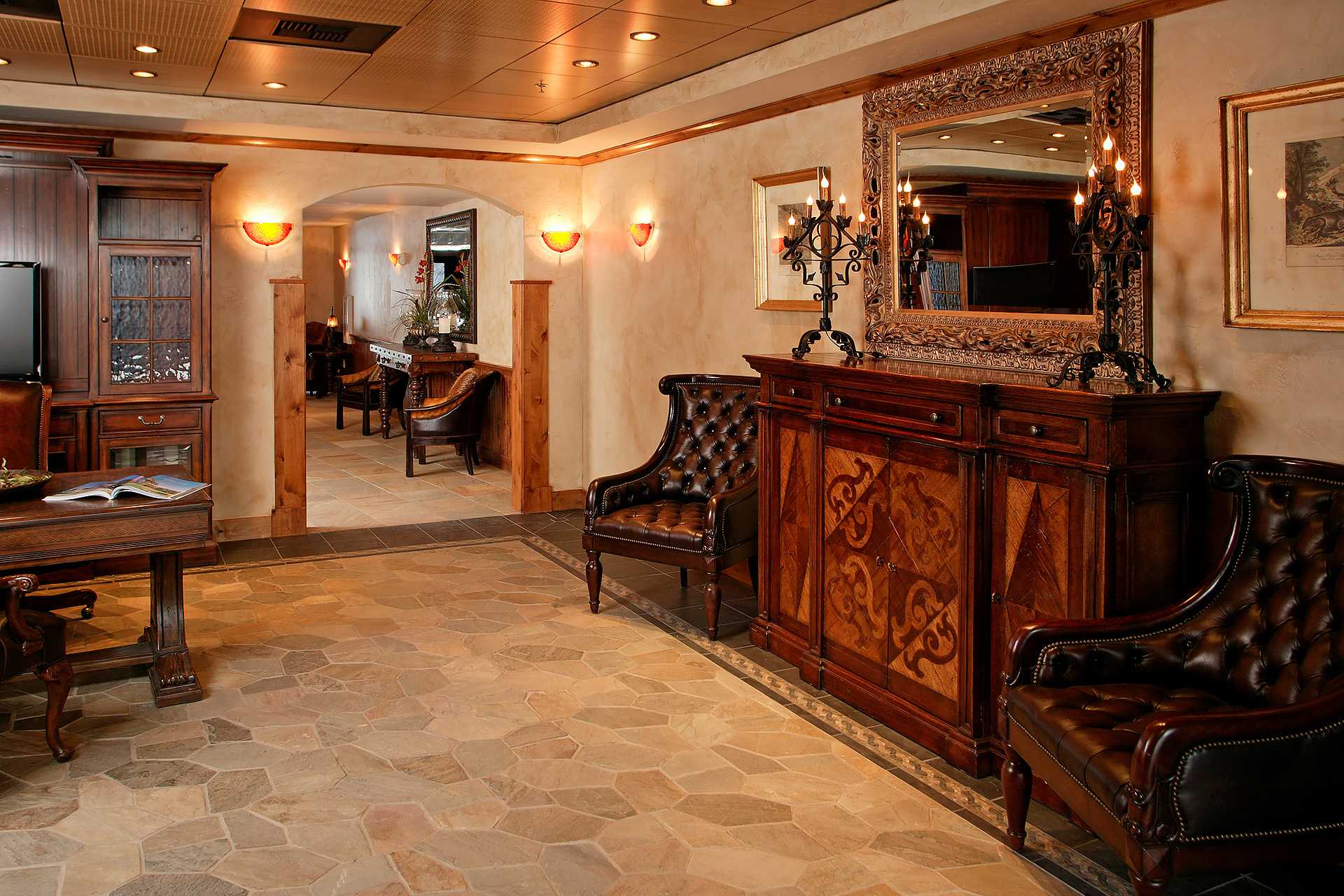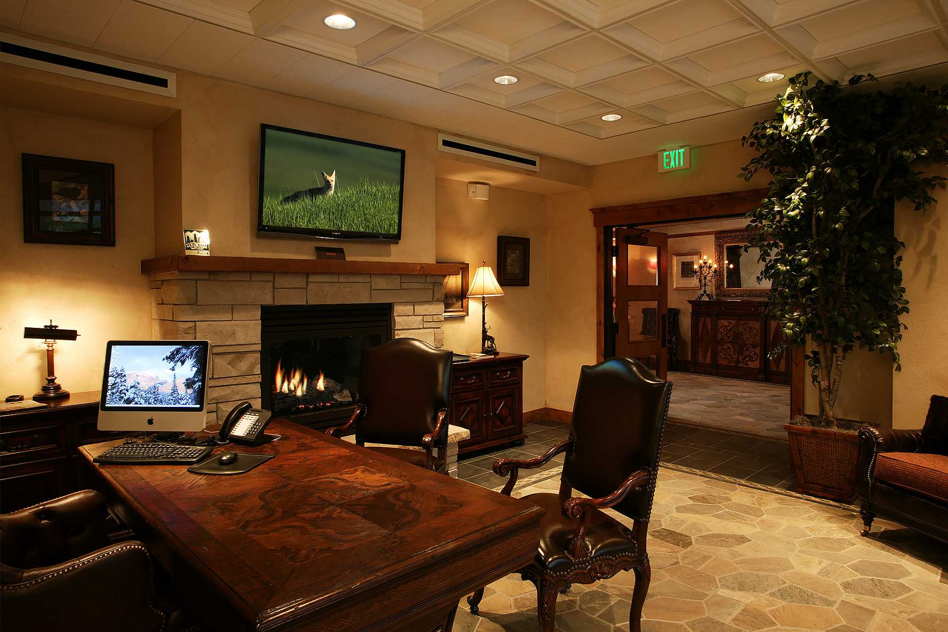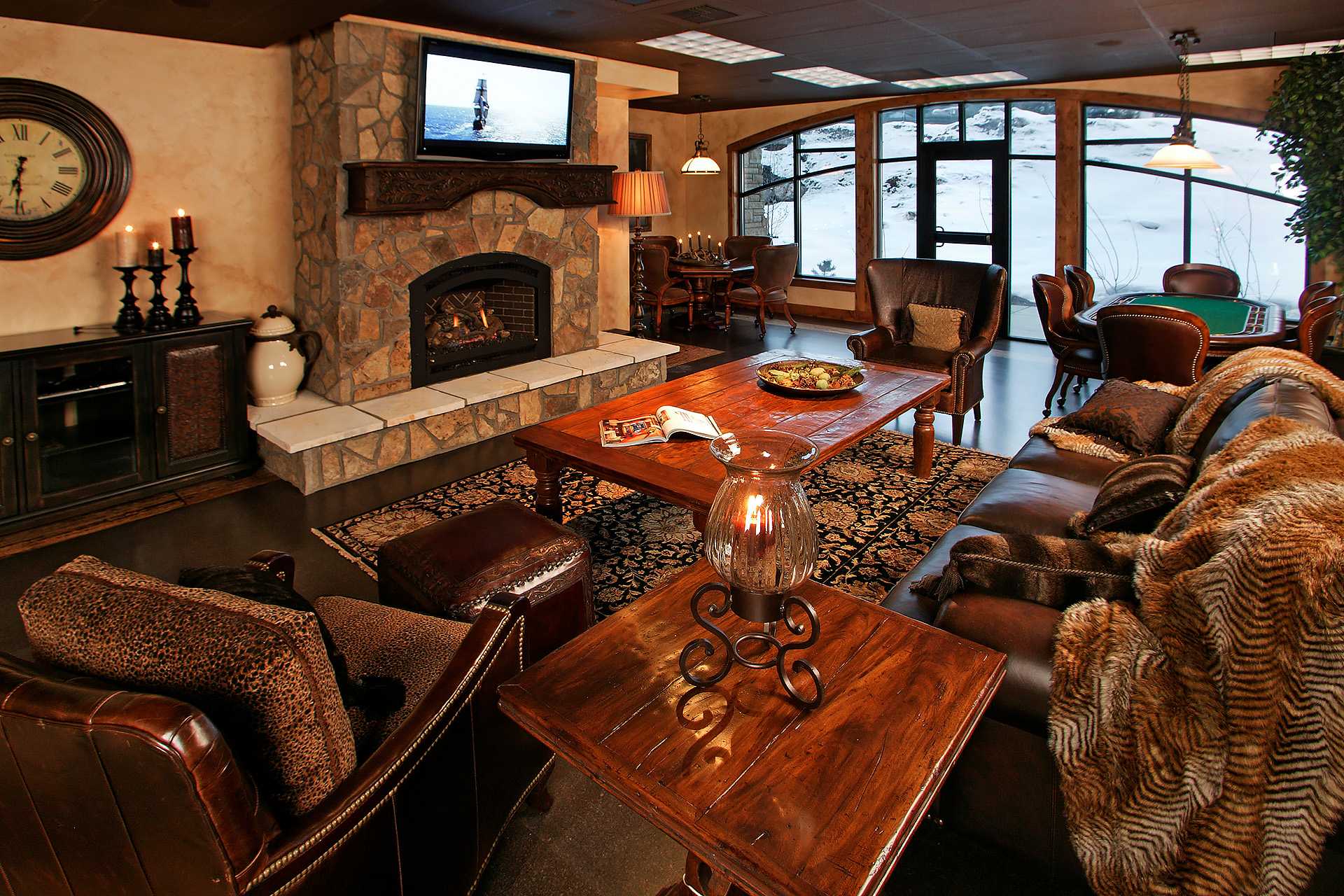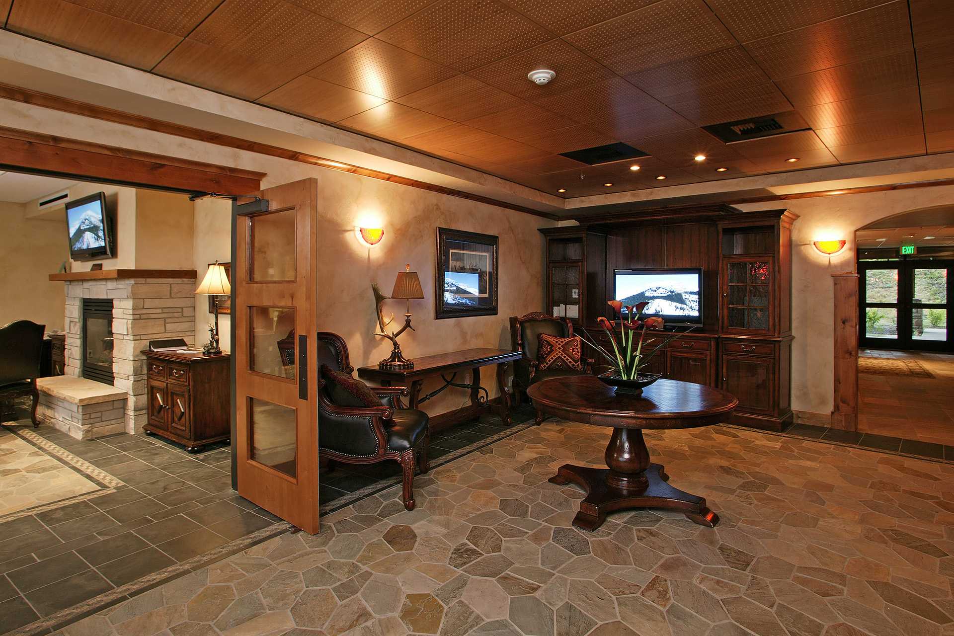 - Guest Lounge, with fireplace, large high-definition TV, game tables, and sitting areas