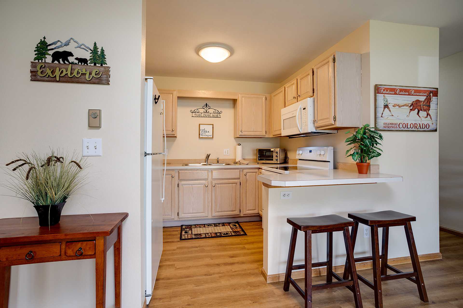 Light and bright and recently refreshed interiors, a 1 BD / 1 BA residence at The Pines. Enjoy easy access to the resort via the free city bus, or during the warmer months connect to the core trail just a few blocks away for a stroll along the Yampa river. This ground floor residence offers convenience (no stairs) and great little patio off the living space.