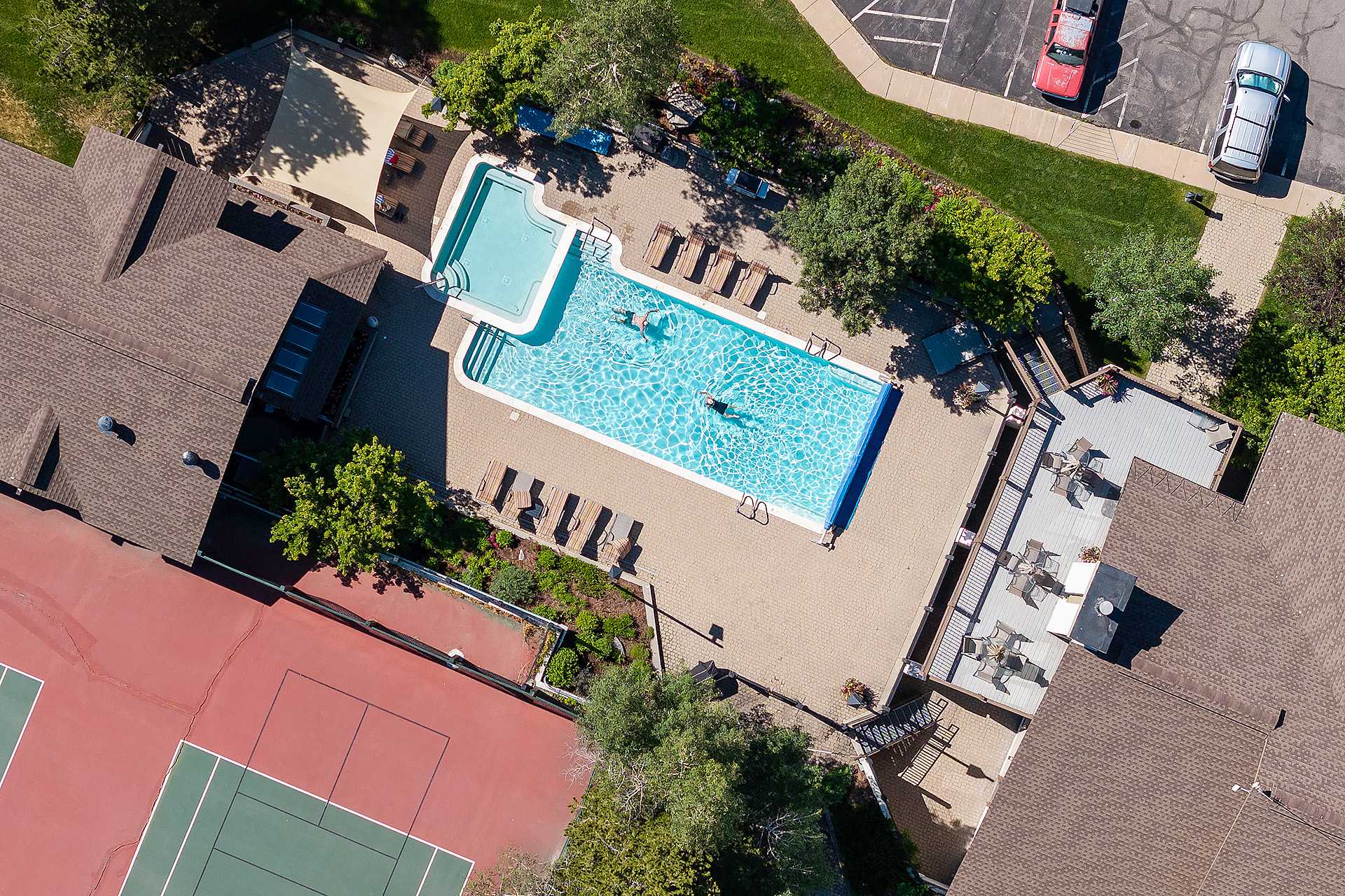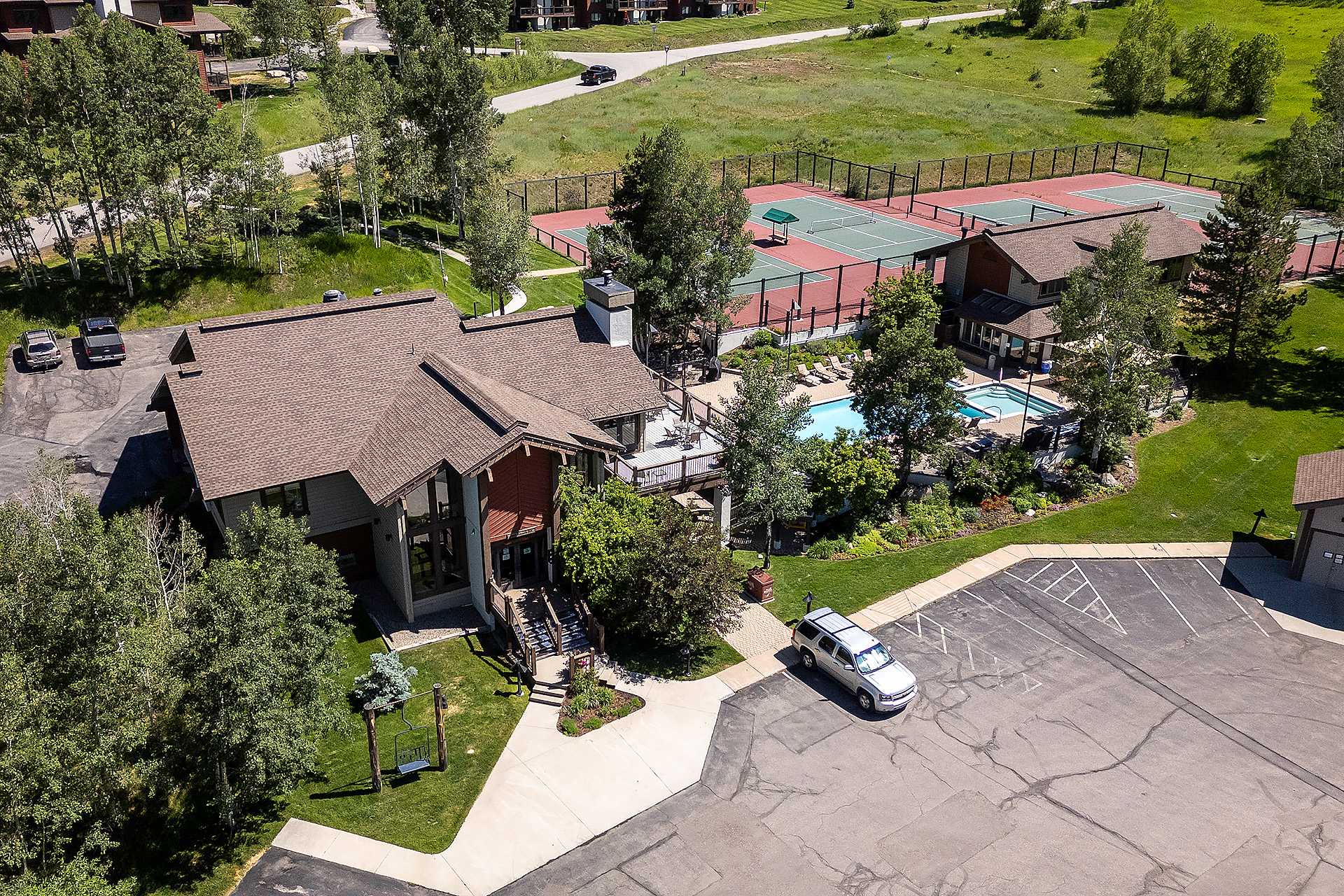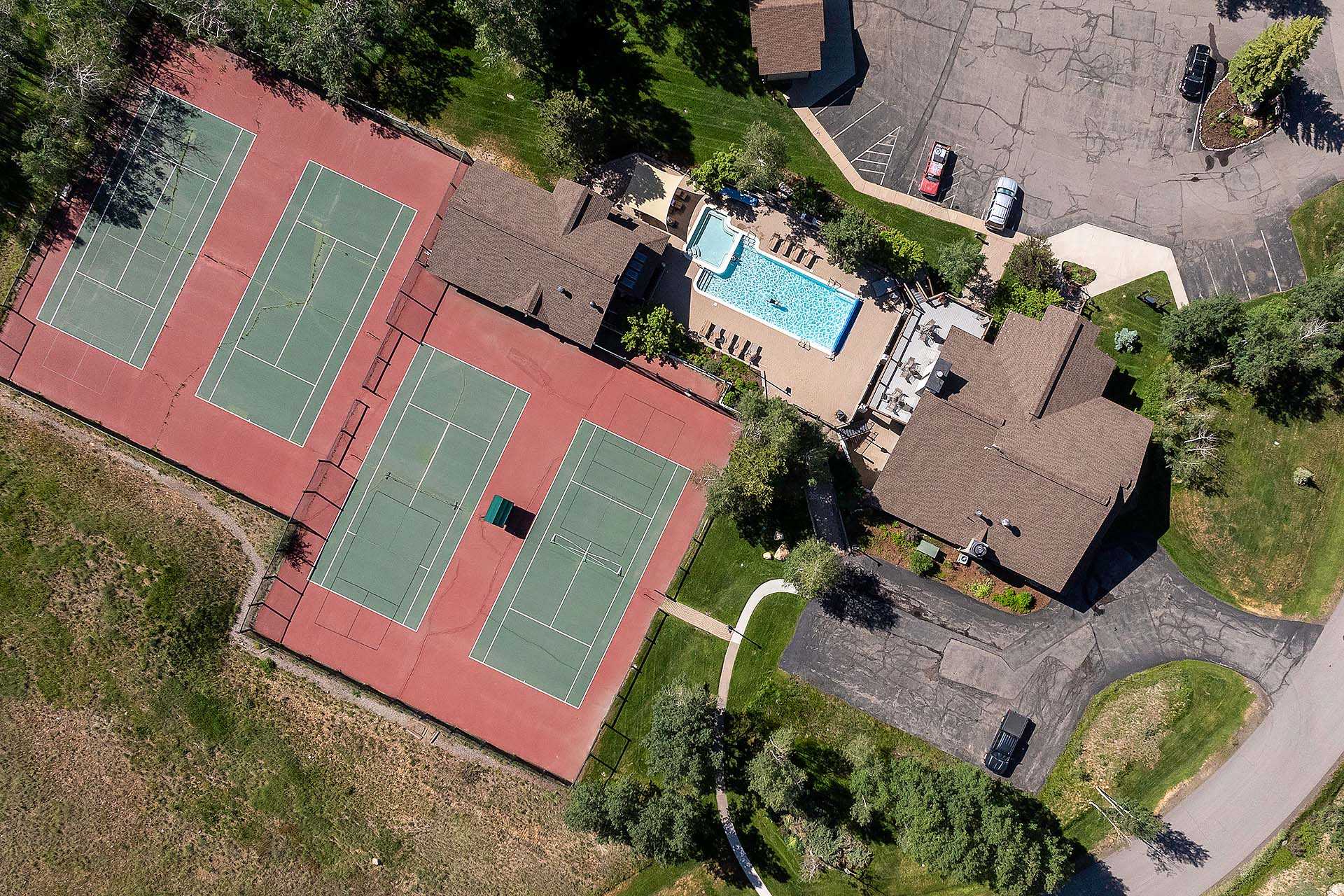Onsite amenities include a fitness center, outdoor heated pool, three outdoor hot tubs, men's and ladies' saunas, and four outdoor tennis/pickleball courts. Please note that the pool and hot tubs are open during winter and summer months only. Arrangements can be made to use the onsite conference room, as well as the catering service that utilizes the onsite professional-grade kitchen.