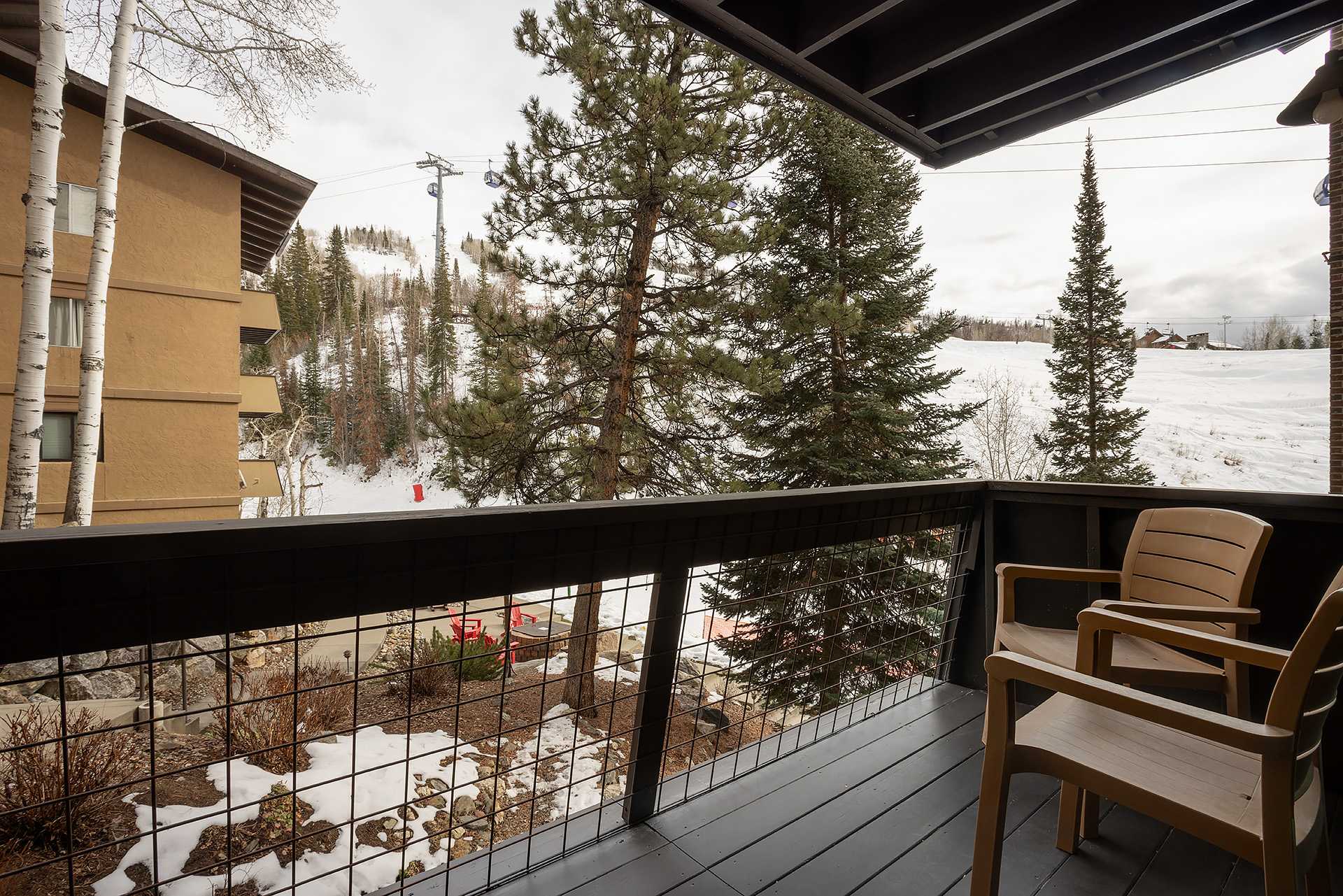 PLEASE NOTE: Storm Meadows East Slopeside building is located on a hillside, entered from the parking lot on the 6th floor. The elevator only services floors 4 - 6. Stairs must be taken to access the slopes and hot tub on the 1st floor.